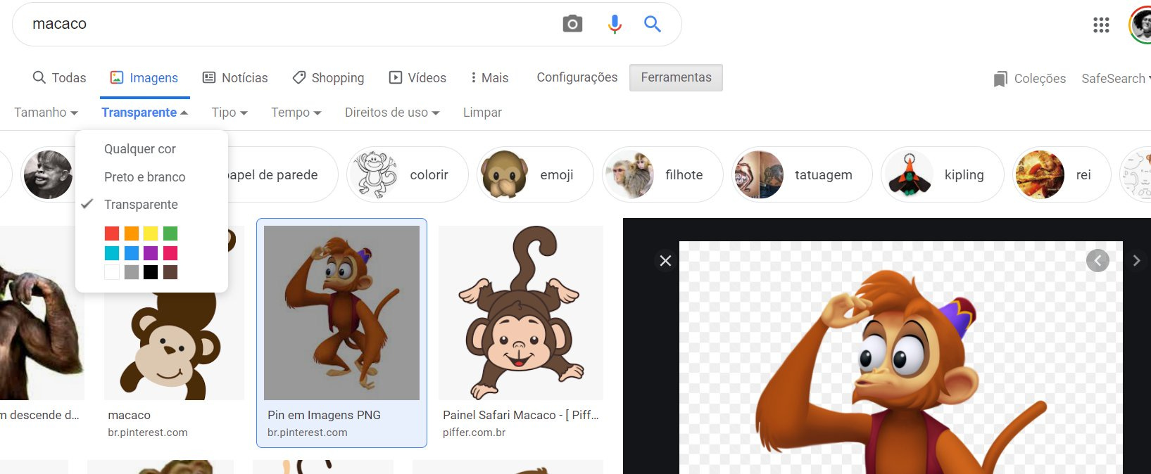 O Google vai mostrar todas as imagens que foram salvas como transparente (png, gif, svg…) mas para tirar a prova clique na imagem (que vai ter um fundo branco) e veja se na visualização a imagem tem o fundo quadriculado. ISSO é um png transparente verdadeiro.